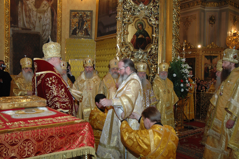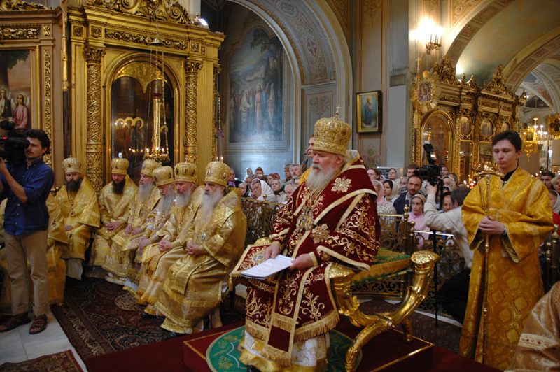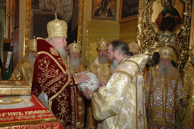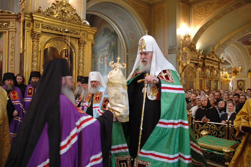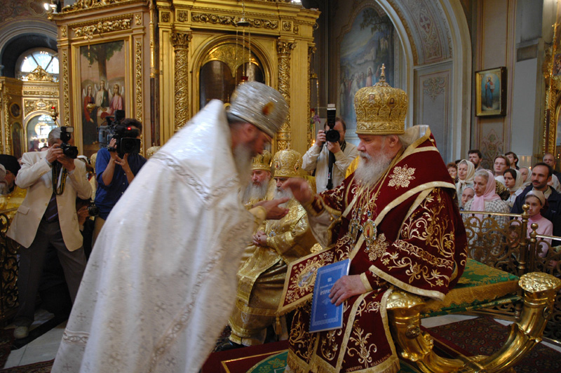 В первую очередь Вы сказали, что Святейший Алексий не очень любит греческие скуфейки, маленькие клобуки, и мы отправились покупать русские. Единственным местом, где мы их нашли, оказался Сретенский монастырь. Эти клобуки были такой огромной высоты, что я боялся его надевать, — там, наверное, с четыре моих головы сверху было…