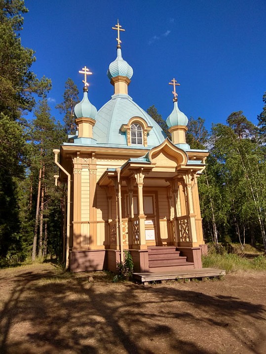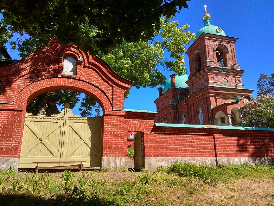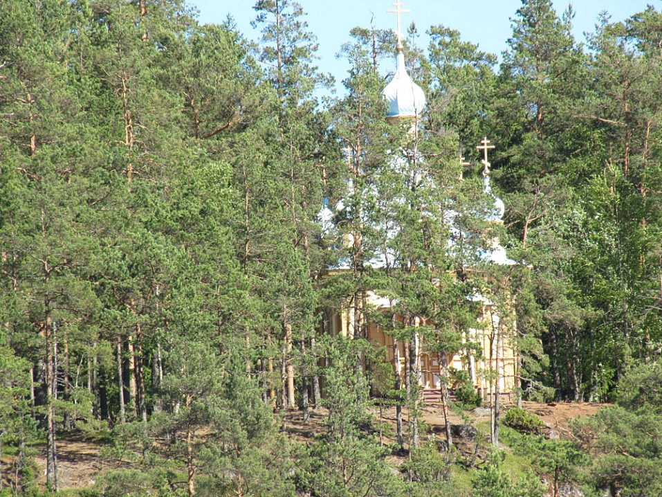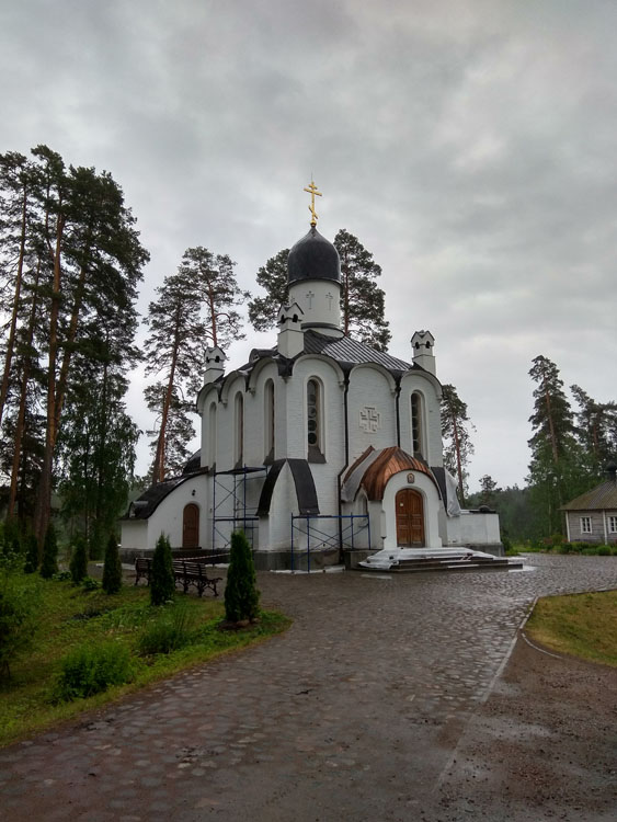 Подошёл к скиту, читаю табличку на вратах: “В понедельник и пятницу дни молчания — скит закрыт для посещения”. Сегодня вторник, значит, зайти можно. К сожалению, храм закрыт. Может, все ушли на трапезу? Что ж, кланяюсь старцам, похороненным за алтарем и спешу на выход к пустой могиле прп. Антипы Валаамского.
