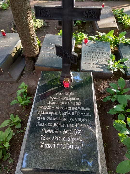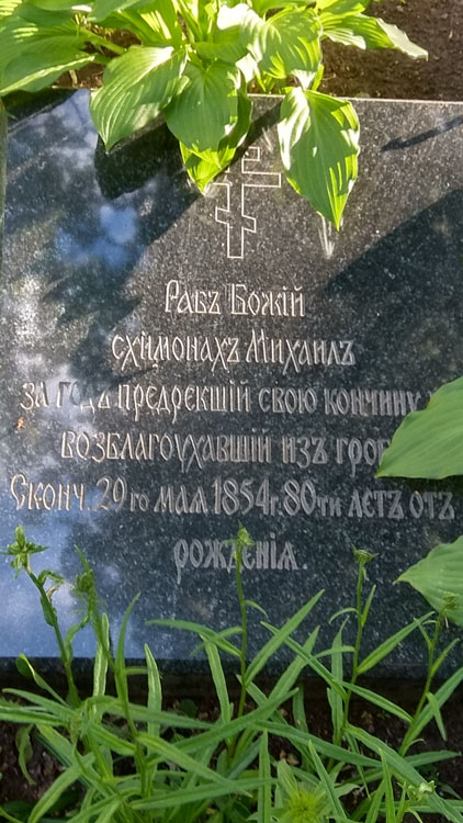 Интересна история его захоронения. Обычно монахов хоронят на территории братских кладбищ, а тут могила святого старца и за забором. Словно изгой. Известно, что этот скит отличается особой строгостью, и женщинам входить на него разрешается всего лишь один раз в год на престольный праздник. Вот поэтому его духовные дочери просили, чтобы он распорядился похоронить себя вне территории, чтобы можно было им приходить к нему на могилку.