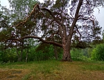 Знаменит он и своей многовековой сосной, воспетой художниками и поэтами. Знаменит и дубовой аллеей. На пути вас приветствуют каменный поклонный крест и две часовни — Владимирская и часовня Крестных страданий Христовых.