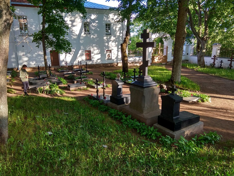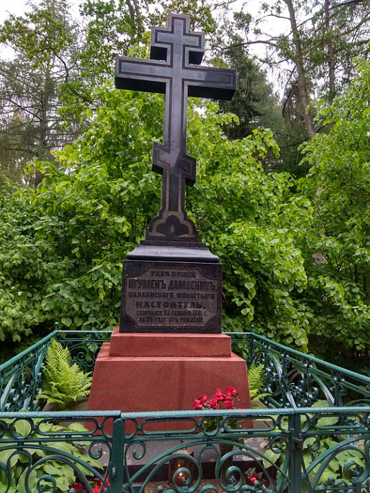 Осматриваю скит, спускаюсь к причальчику, любуюсь шикарными видами и возвращаюсь назад теми же путями, но уже в другую сторону от усадьбы — на почтенное игуменское кладбище. На нем похоронены многие монастырские правители, в том числе прославленный зарубежной православной церковью игумен Дамаскин, выдающийся строитель обители.