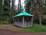 И вот, наконец, деревянные мосты, которые приводят меня к Никольскому скиту. Захожу в храм. Светлый, красиво расписанный. В нем проходят богослужения, братья читает правило, но только в летнее время, поскольку он не отапливается.