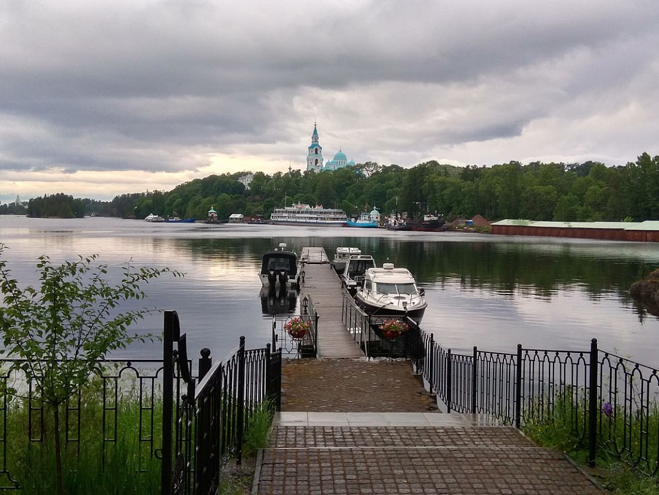 Такое количество построек вдоль берега чем-то напоминает Афон, только на Афоне стоят целые монастыри, а тут на весь остров один монастырь. Однако природа Валаама, с ее вековыми соснам, куда более величественна.