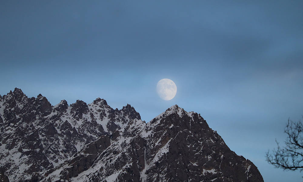 Но вот из-за горных хребтов вышла луна и снежная пелена наполнилась зыбкими мерцающими искрами. Тропы не стало видно, и мы начали проваливаться в глубокие ямы между камнями, иногда утопая по шею в снегу.