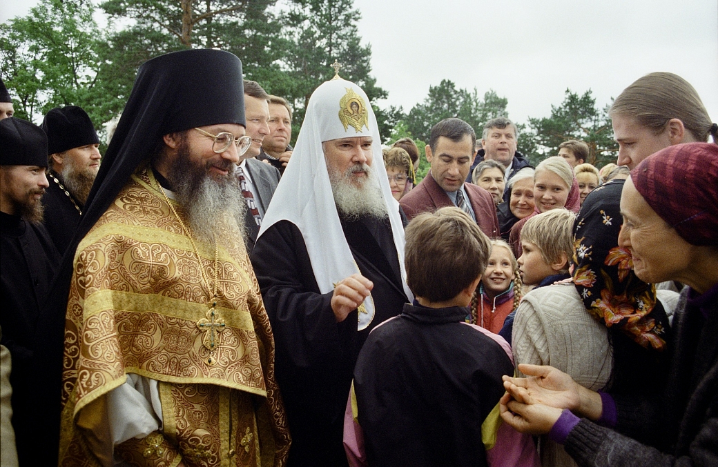 Особое попечение о Валааме всегда имел Святейший Патриарх Алексий II (Ридигер). Он стоял у истоков возрождения Валаамского монастыря, и именно по его инициативе, когда он был еще митрополитом Ленинградским и Новгородским, 18 сентября 1989 года Совет министров Карелии решил «передать в пользование Ленинградской епархии Спасо-Преображенский собор с Внутренним каре и расположенные рядом скиты, кроме Воскресенского и Гефсиманского».