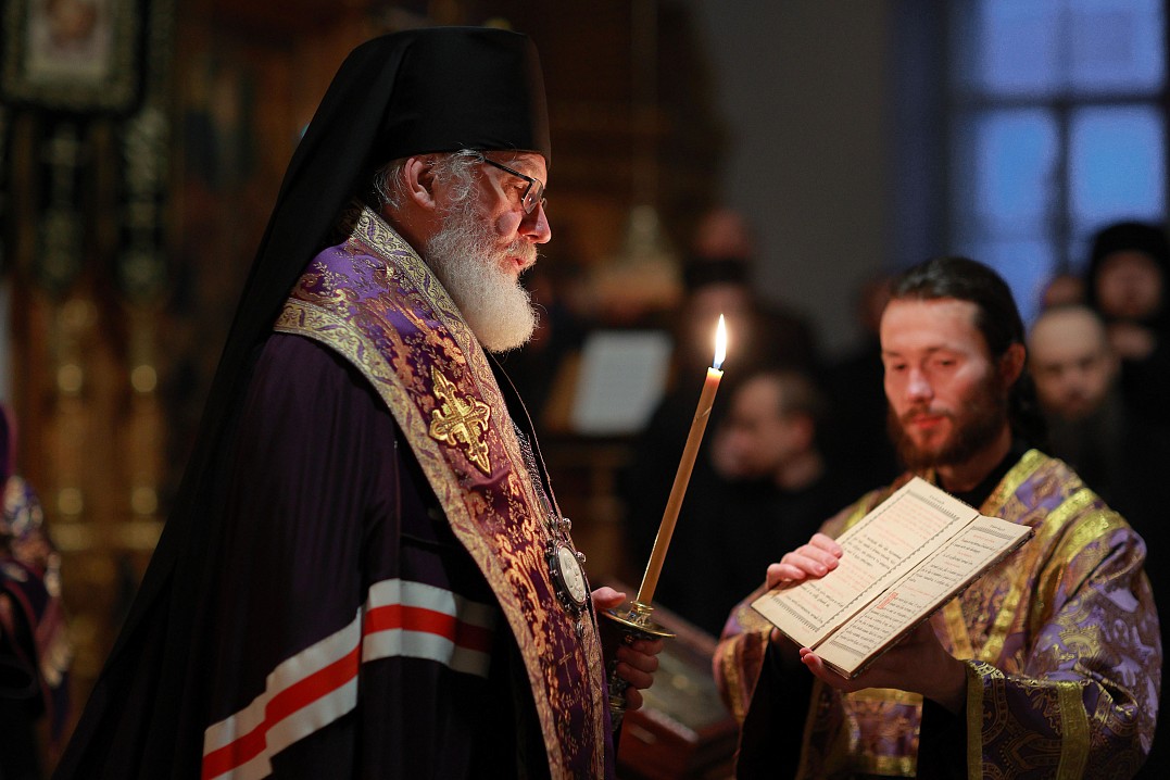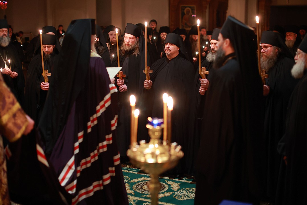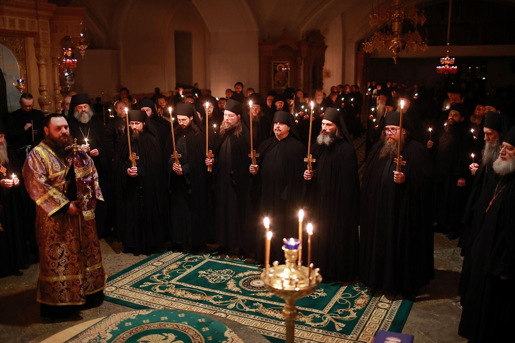 ожидает Игумен монастыря. В это время хор, протяжным знаменным распевом,