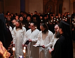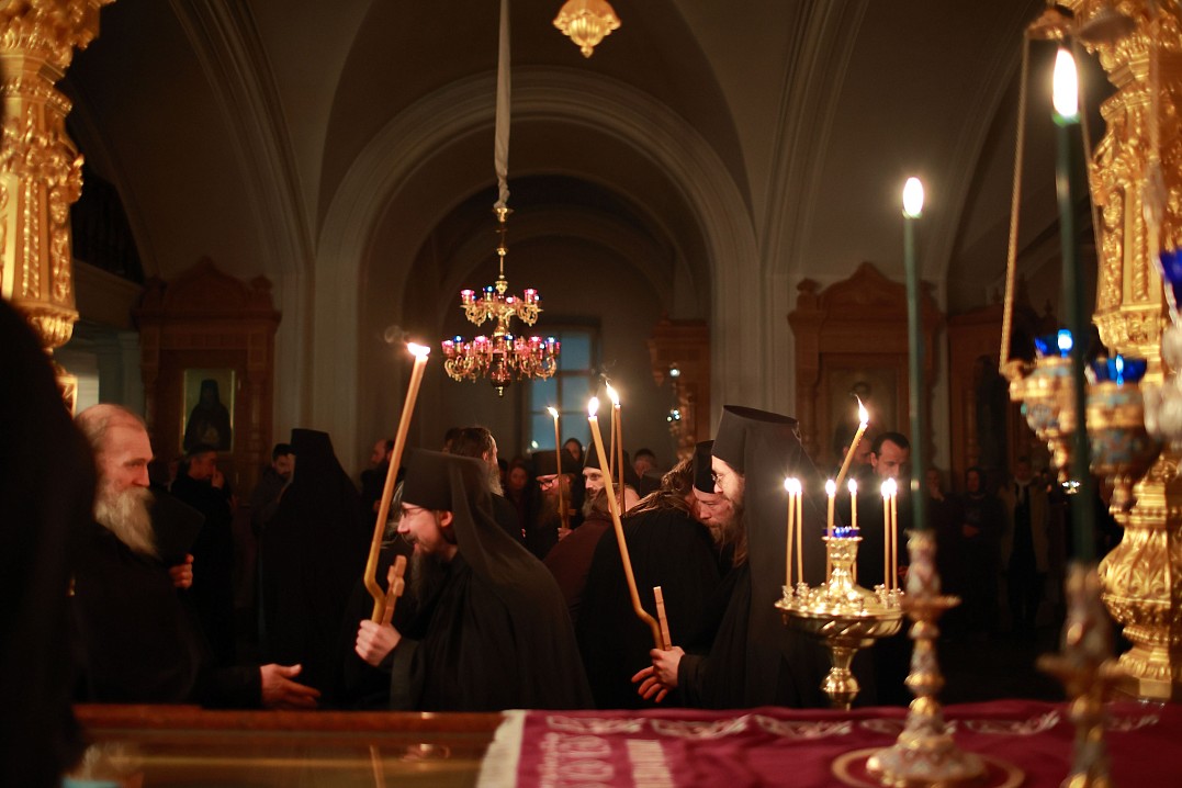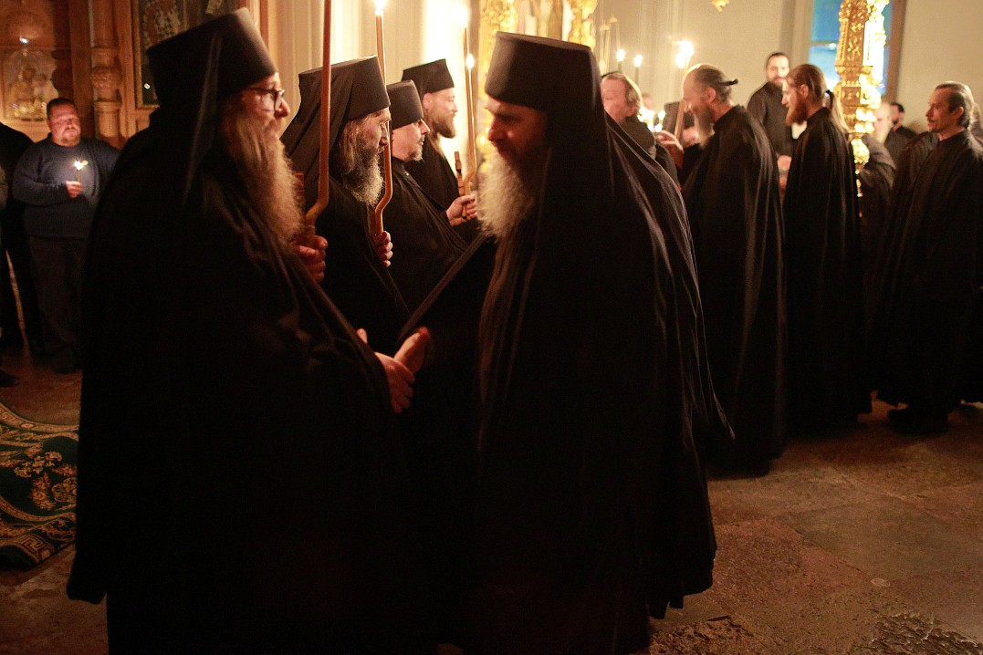 покаяния», стоят отцы с зажжёнными свечами, чтобы молитвенно поддержать и