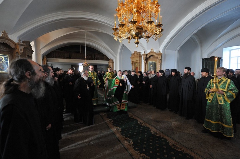 Россия всегда опиралась на опыт монашеских обителей, но не устояла перед соблазнами, и даже слава Валаамской обители, Оптиной пустыни и наших прославленных лавр не остановили народ от богоотступничества. Вот об этом тоже нужно задуматься. Что все это означало? Подвиги иссякли? Молитва ослабла? Или жизнь была неправедная? За что Господь наказал не либеральных безбожников и революционеров — за что Он обители наказал? Нет наказания без причины. А потому, пребывая в славе монастырской жизни, переживая радость осенения Святым Духом, всегда храните смиренномудрие, никогда не превозношайтесь над другими, никогда не считайте себя хранителями конечной истины. Во смирении простирайтесь пред Господом так, как вы простирались в момент иноческого пострига. Сердце чистое и сокрушенное Господь не уничижит.