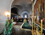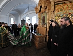 Епископ Троицкий Панкратий ознакомил Его Святейшество с ходом ремонтно-реставрационных работ во Всехсвятском скиту.