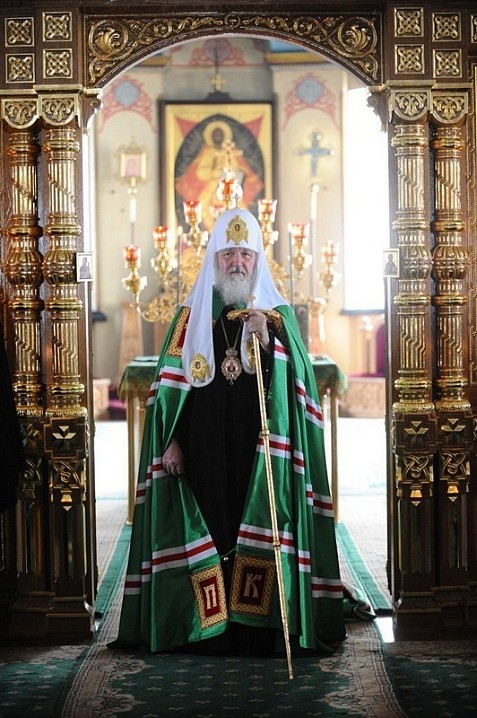 Святейший Патриарх Кирилл посетил возрожденный верхний храм в честь Архангела Михаила и прочих Небесных Сил бесплотных.