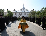 И дай Бог, чтобы больше никогда не закрывались обители, чтобы никогда народ наш не отказывался от Бога. Но для этого и жизнь обители должна становиться иной. Вот это наше с вами историческое задание — стать монахами, обладающими духовной силой, способной удержать апостасию в XXI веке. Никакими нахмуренными бровями, никаким надвинутым на глаза клобуком, никаким аскетическим видом этого сделать нельзя — это можно сделать только любовью, смирением, сильнейшей молитвой.