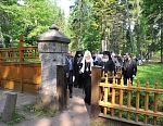 Предстоятеля Русской Православной Церкви встречали скитоначальник иеродиакон Илия (Руднев) и насельники скита. Святейший Владыка посетил храм и совершил молитву у поклонного креста.