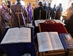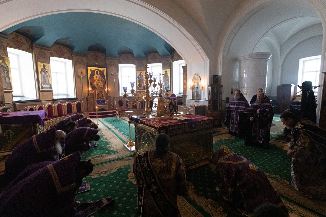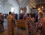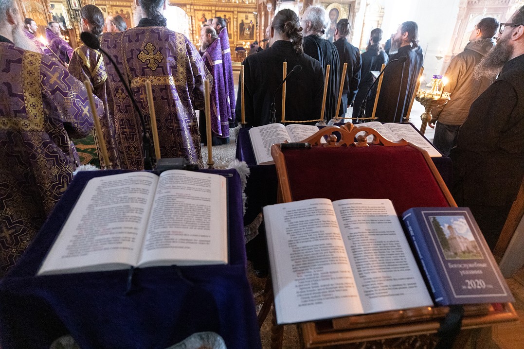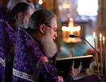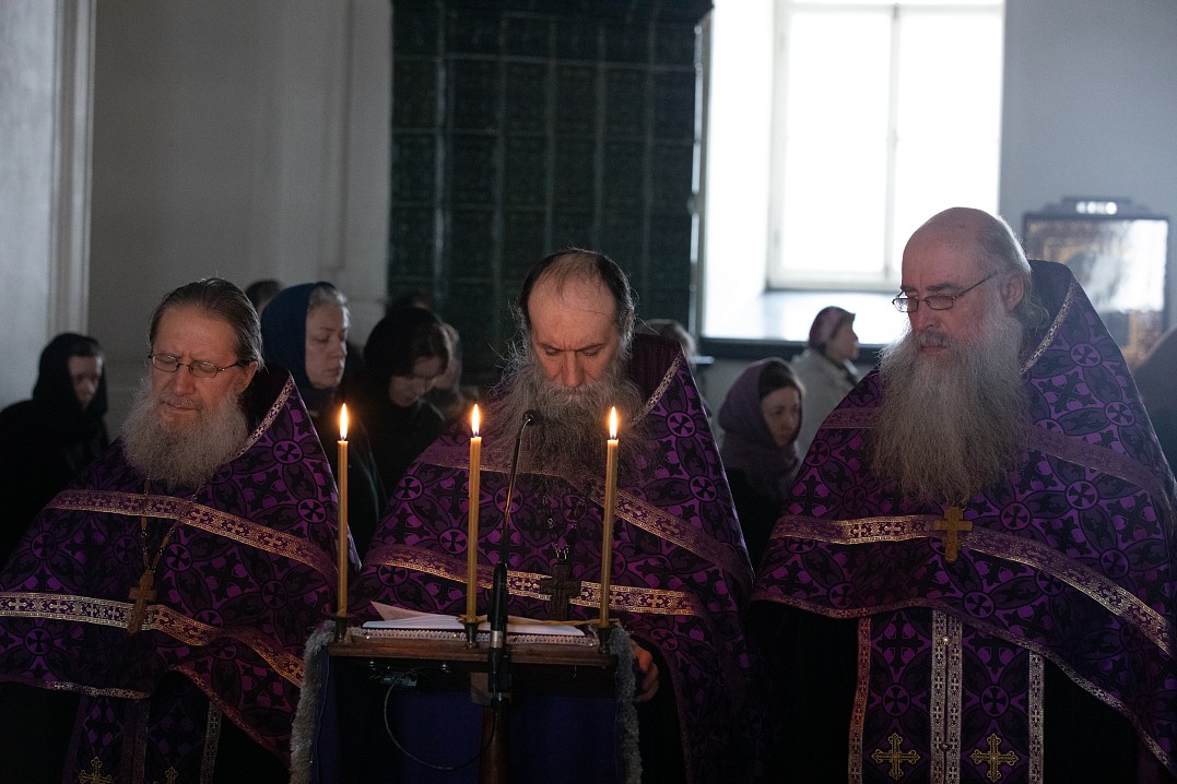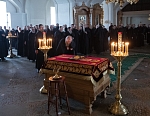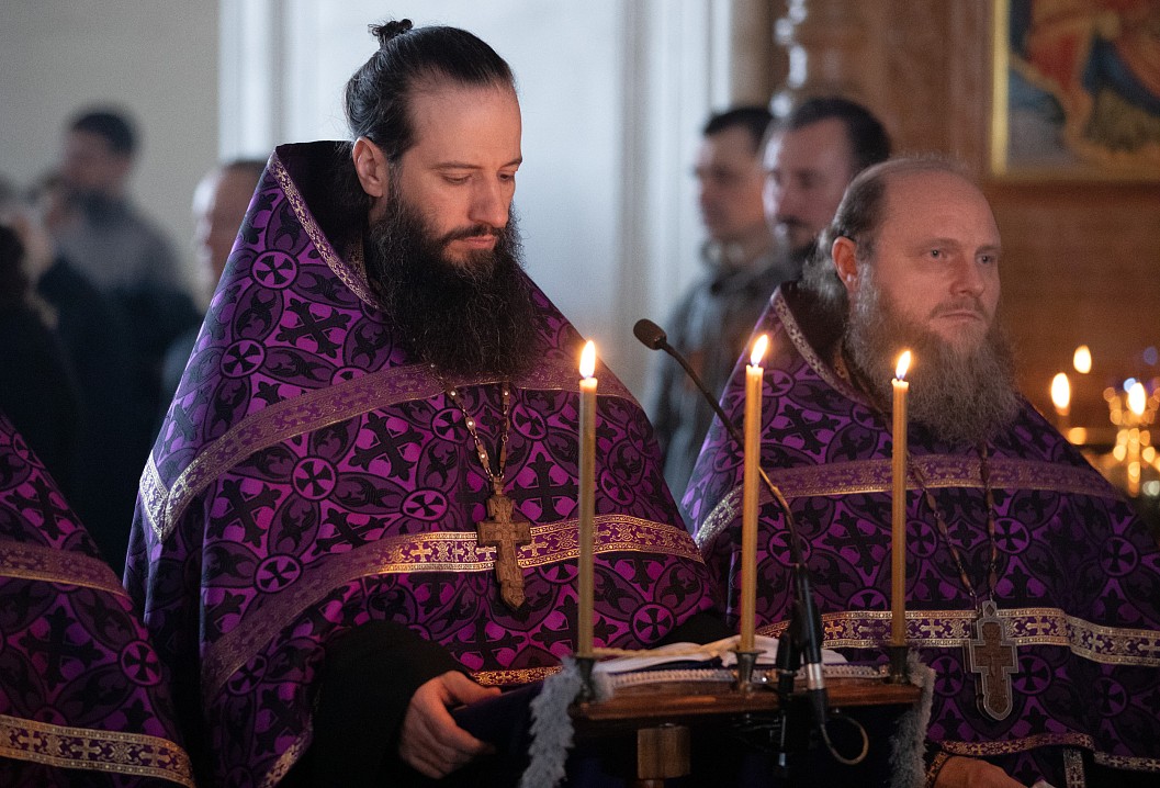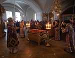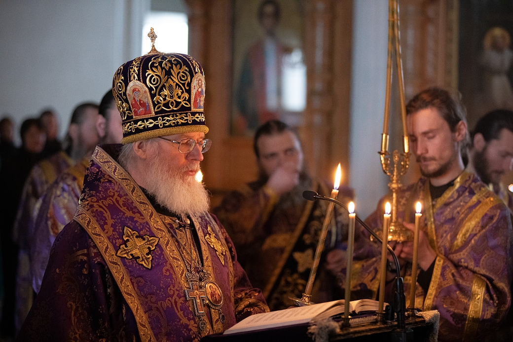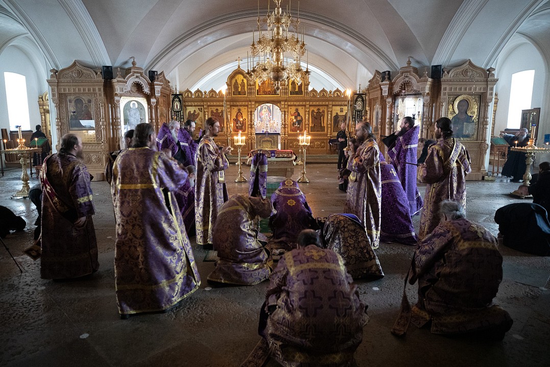 17 апреля 2020 года в Великий Пяток – день, посвященный воспоминанию Святых спасительных Страстей Господа нашего Иисуса Христа, – Игумен Валаамского монастыря епископ Троицкий Панкратий совершил вечерню с выносом Плащаницы Спасителя в храме преподобных Сергия и Германа Валаамских чудотворцев.