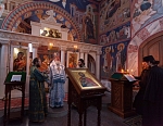 Роспись храма в течение двух лет проводил художник Илья Терентьев с бригадой мастеров из Москвы и Санкт-Петербурга. Храм расписан в стилистике раннехристианского искусства с использованием античной орнаментики, византийского стиля XII века. Иконостас, престол и жертвенник изготовлены из камня с художественной резьбой.