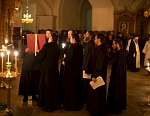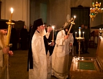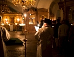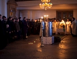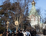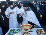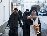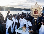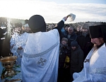 Сразу после торжественной Божественной литургии состоялся Крестный ход на Иордань для совершения чина Великого освящения воды. По древнейшей традиции, восходящей к первым годам существования Церкви, вода освящается призыванием Святой Троицы, призыванием Господа. И вода, не меняя своего естества, наполняется Божественной энергией, Божественной силой, и это дивное «таинство» сообщает нам уверенность в том, что Бог благодатью Своею может пребывать со всеми нами, со всем Своим творением.