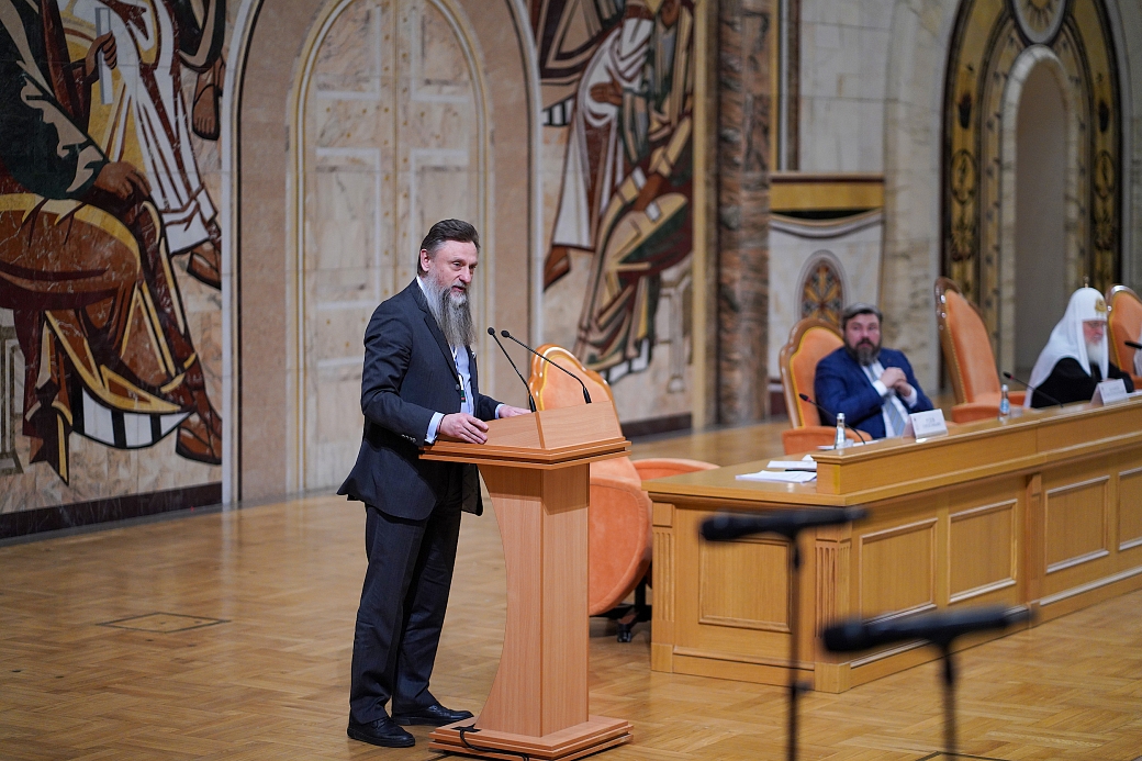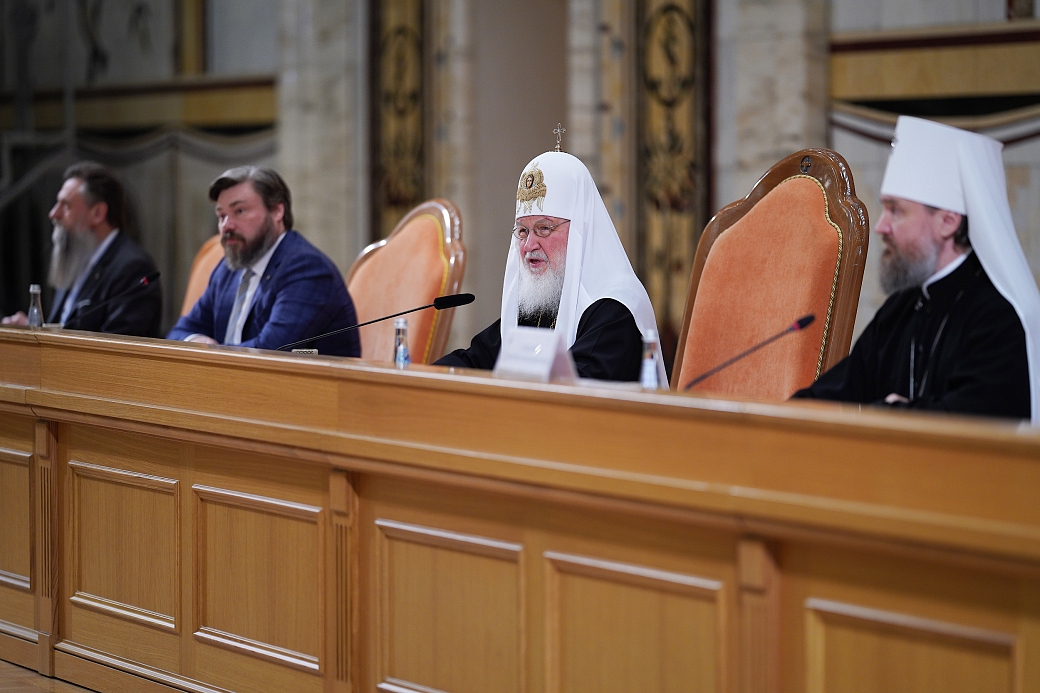 Затем слово было предоставлено главе Собора Святейшему Патриарху Московскому и всея Руси Кириллу, который выступил с основным докладом.