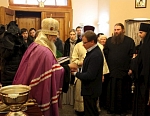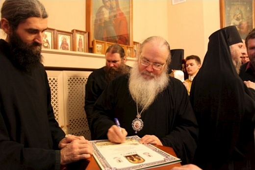 После совершения чина освящения Владыка обратился ко всем собравшимся с архипастырским словом, в котором поблагодарил генерального директора и представителей реставрационной компании «Интарсия» за вклад в возрождение Валаамской обители. Он наградил благодетелей почетными грамотами и медалями прпп. Сергия и Германа Валаамских чудотворцев II степени, а также вручил памятные подарки. Затем все присутствующие смогли послушать выступление хора Санкт-Петербургского подворья Валаамского монастыря.