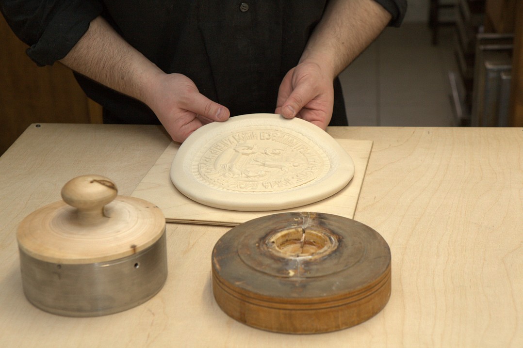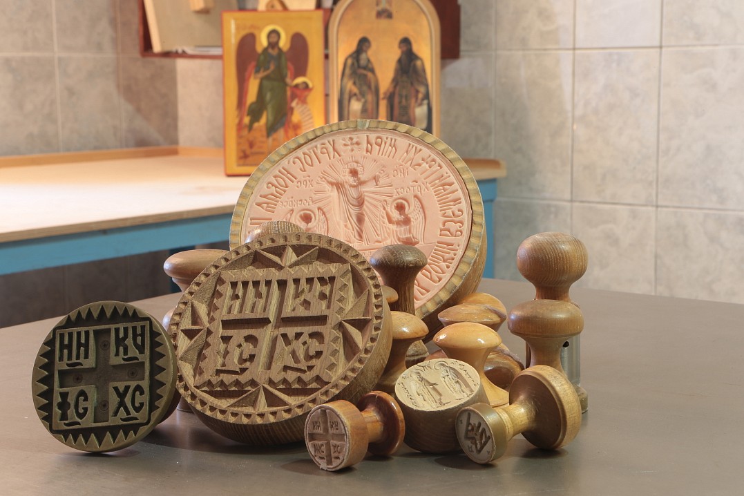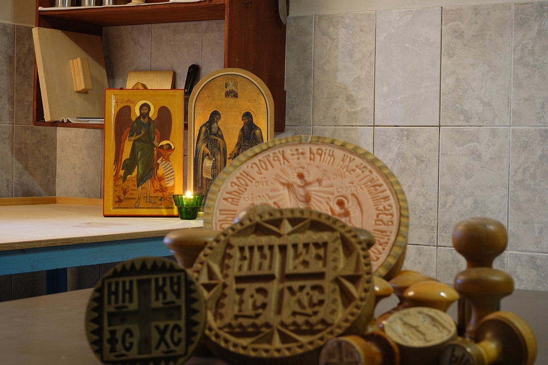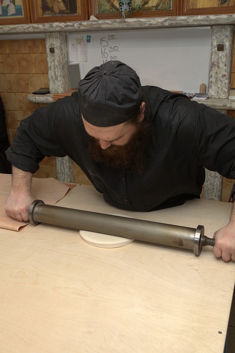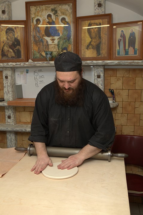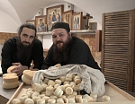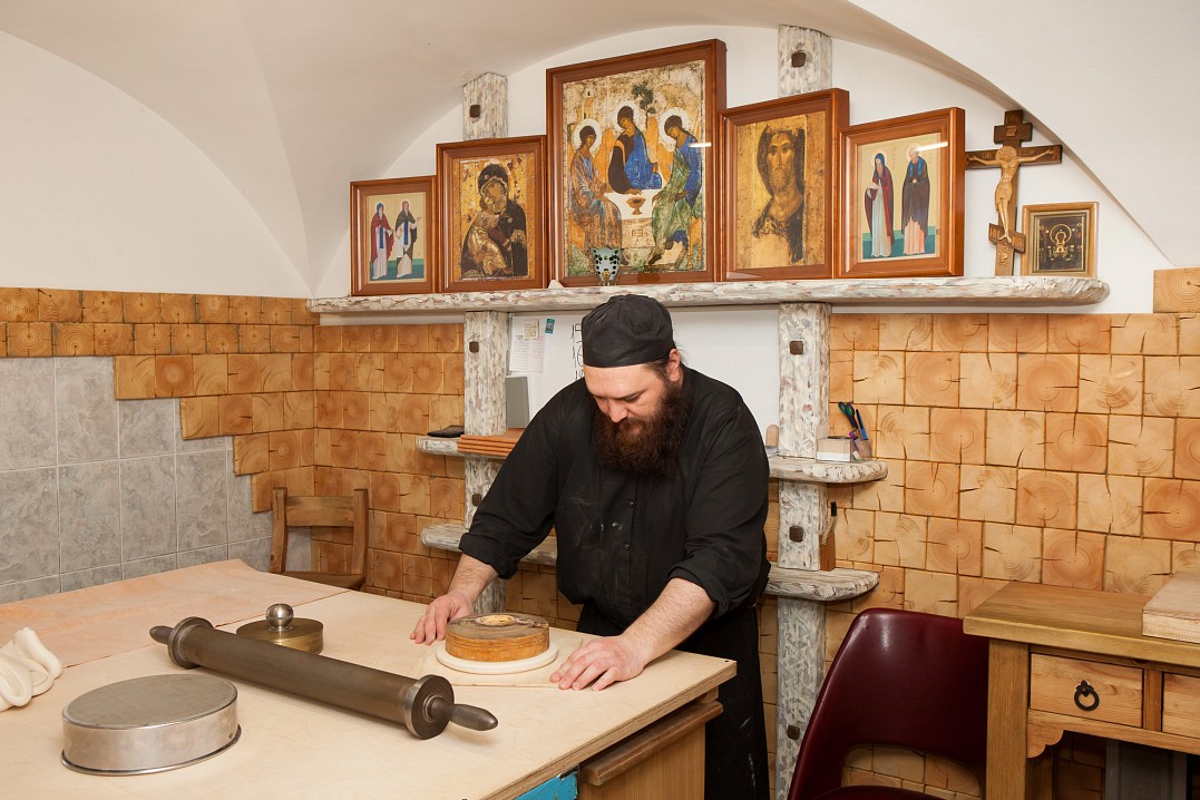 В просфорне монастыря приготовили артосы – особые большие просфоры, которые освятят на Пасху и отправят во все храмы обители. Для каждого престола печется отдельный артос: в Спасо-Преображенский собор нужно три больших артоса, на Центральную усадьбу монастыря – порядка десяти, а всего их требуется более полусотни.