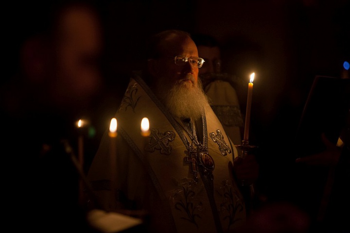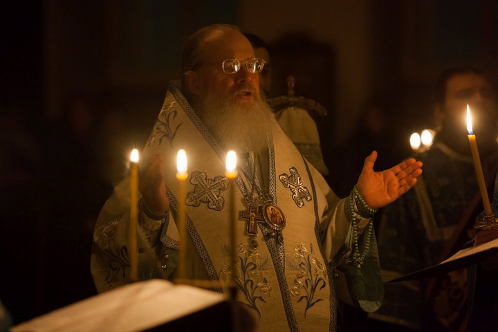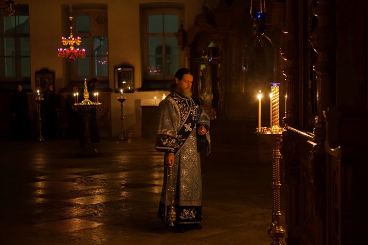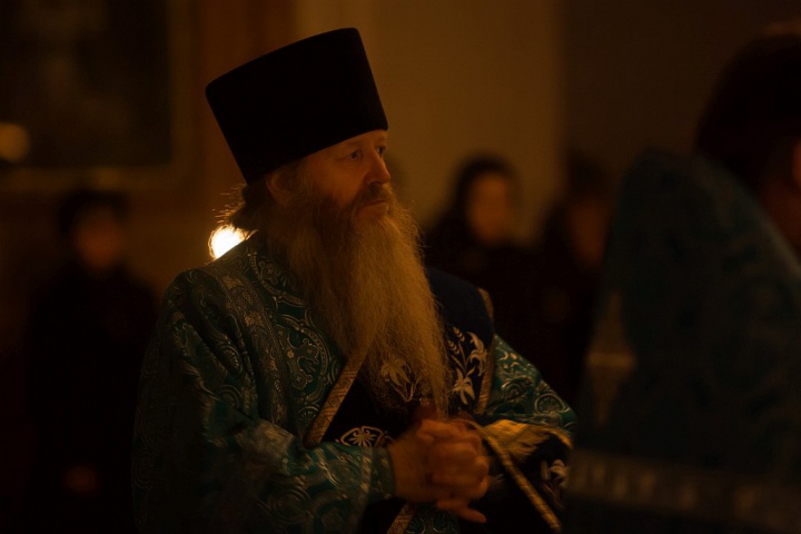 Игумен монастыря совершил утреню с чтением Акафиста Пресвятой Богородице