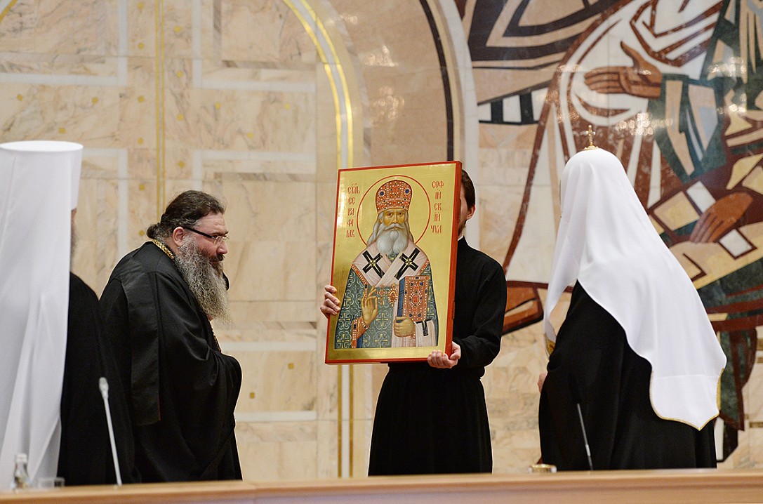 В Зале церковных соборов были заслушаны доклады митрополита Волоколамского Илариона и представителя Болгарской Православной Церкви, митрополита Варненского и Великопреславского Иоанна – сопредседателей Совместной комиссии Русской и Болгарской Церквей по вопросу канонизации архиепископа Серафима (Соболева). Единогласным решением архиепископ Серафим был прославлен в лике святых.