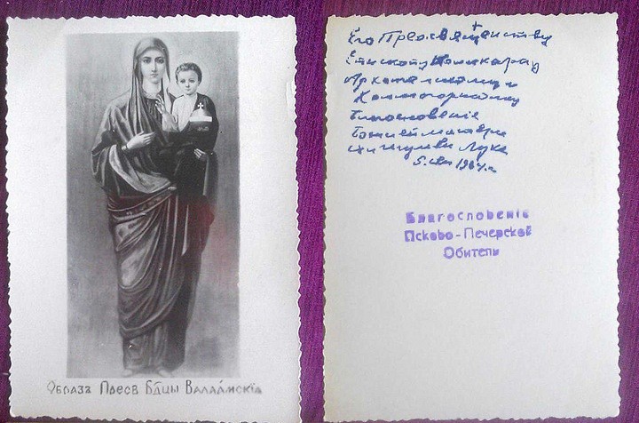 Здесь, в Псково-Печорском монастыре, и пересеклись пути валаамских икон и отца Иосифа (Пальчикова), которого эконом обители благословил одной из них. Иконы были подарены без киотов, и отец Иосиф предполагает, что у самих монахов иконы могли висеть без них.