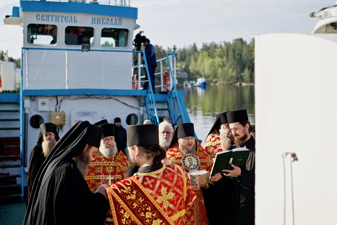 22 мая в Валаамском монастыре большое событие. В этот день празднования перенесения мощей святителя Николая Чудотворца из Мир Ликийских в Бари, братия монастыря совершает крестный ход «по водам». Неся ковчег с мощами святителя Николая, иконы и хоругви, все выходят из Спасо-Преображенского собора монастыря и спускаются к Монастырской бухте, где садятся на корабли и плывут к Никольскому скиту. Крестный ход плавно переходит в Божественную Литургию в Никольском храме скита, и множество собравшихся причащаются Святых Христовых Таин.