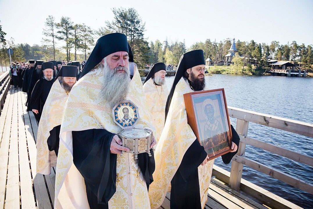 22 мая в Валаамском монастыре был совершен крестный ход по водам в честь воспоминания о перенесении мощей святителя Николая из Мир Ликийских в Бари.