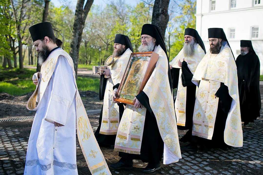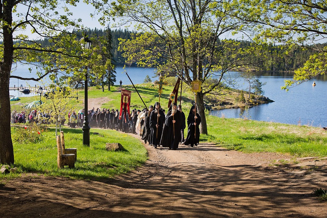 По традиции, в 8 часов утра крестный ход начался от главного храма монастыря – Спасо-Преображенского собора. Братия с песнопениями, неся хоругви и иконы, прошли к Монастырской бухте, после чего на катерах отправились в скит святителя Николая. С крестным ходом проследовала в пути и святыня – ковчег с частицей святого. Обычай совершать крестные ходы очень древний. Он существовал еще в апостольские времена. Впоследствии был широко распространен на Руси. Издревле крестные ходы были одним из действенных средств сохранения от зла, от нашествия врагов, защиты от стихийных бедствий, эпидемий и болезней.
