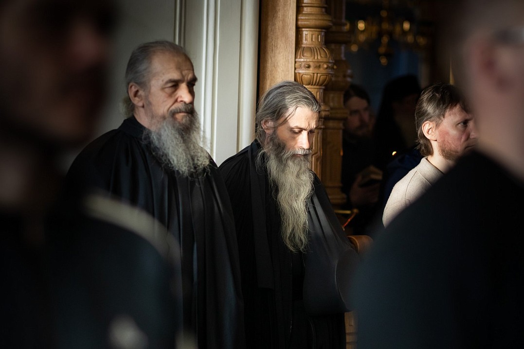 «Плита была найдена нами более 10 лет назад, — рассказывает настоятель Знаменской церкви, протоиерей Андрей Егоров. – При работах по расширению храма место захоронения оказалось под фундаментом западного притвора. В процессе работ захоронение старца Геронтия было приоткрыто, видна была правая коленочка старца. Многие при этом ощущали благоухание из земли. Вскрывать захоронение святого мы не дерзнули, тем более что и нижняя плоскость фундамента оказалась на 40 см выше мощей. Оставили все как есть. Теперь плита указывает, как и в прошлом, точное место захоронения старца с Валаама по имени Геронтий, святого старца!».