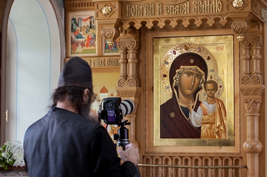 Казанская икона Божьей Матери была написана в одном из сибирских монастырей, специально для валаамского скита, и в мае 2015 года доставлена на Валаам. Она была установлена под стеклом в специальном киоте с надписью «Покрой и Спаси Землю». Сегодня по благословлению епископа Троицкого Панкратия была проведена фотофиксация мироточения иконы, после этого стекло вновь было вмонтировано в киот.