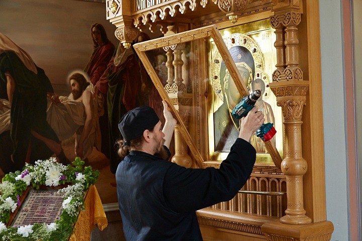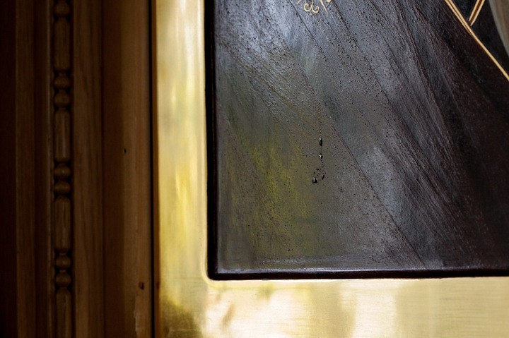 После обнаружения чуда мироточения братией был отслужен благодарственный молебен пред иконой.