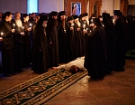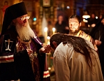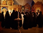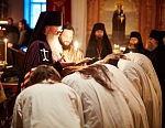 Игумен монастыря епископ Троицкий Панкратий призвал братьев, дерзнувших принять на себя монашеские обеты, не забывать и исполнять их, ибо они даны Господу: «Всю свою монашескую жизнь мы должны посвящать Богу, чтобы идти по тому Пути, который Он нам указал - пути к совершенству. Когда мы взираем на свою сегодняшнюю жизнь, нам кажется, что эта цель бесконечно далека. Но, тем не менее, несмотря на нашу греховность, это тот путь, на который Господь нас поставил,наш долг не сходить с этого пути. И поэтому мы должны самоотверженно трудиться, стараться следовать словам Господа, должны быть искренними и всегда быть честными пред Богом, пред людьми и перед своей собственной совестью. Это путь трудный, нелегкий. Трудно сохранить первую благодать, трудно сохранить первую ревность, еще труднее вновь стяжать благодать уже своим подвигом, стремлением подавить грех и вырвать жало греховное из своей души. Но сила Божия в немощи совершается. И,если мы смиренно осознавая свою греховность и слабость, все же будем трудиться над своим исправлением,то Господь не оставит нас Своею благодатью и Сам восполнит и исправит наши усилия.