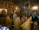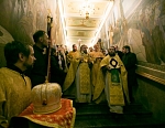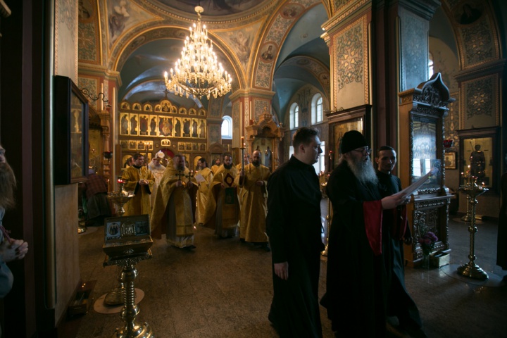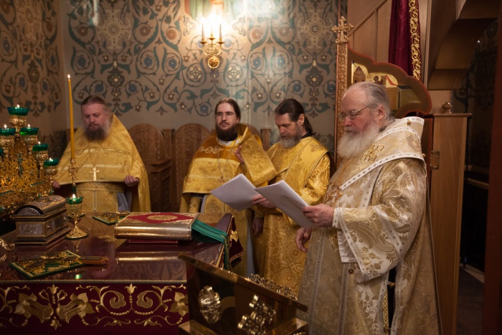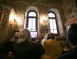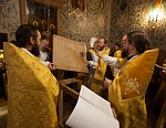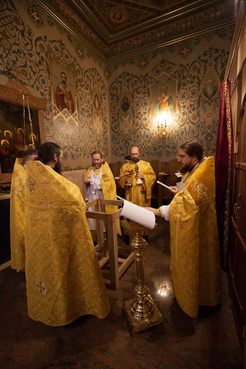 Его Преосвященству сослужили игумен Иосиф (Крюков), и.о. начальника подворья и насельники подворья в священном сане. Диаконское служение возглавил насельник Валаамского монастыря иеродиакон Августин (Беликов) в сослужении диакона подворья Андрея Ильинского.