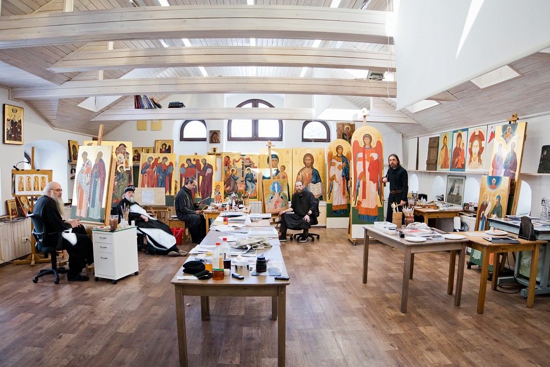 Икона есть искусство из искусств. Прямо под куполами верхнего храма Спасо-Преображенского собора можно увидеть лики херувимов кисти отца Гавриила и лики архангелов, выполненных иеромонахом Алипием. Работа очень тонкая. В руках у архангелов цветы. В цветах выписаны тычинки. Тончайший орнамент по одежде. Казалось бы, для чего такая тонкая живопись, если снизу этого не видно? Этот вопрос занимал современных реставраторов, восстанавливающих росписи Спасо-Преображенского собора после разрухи. А ответ они услышали от игумена монастыря епископа Панкратия: «Монахи для Бога работали!».