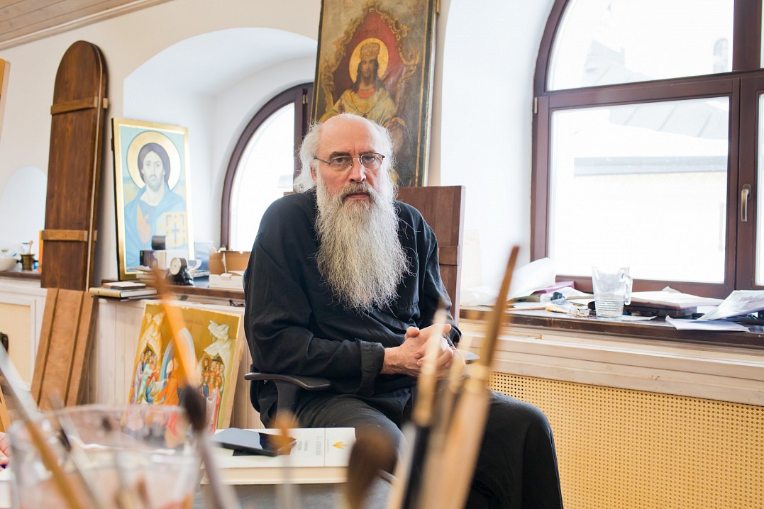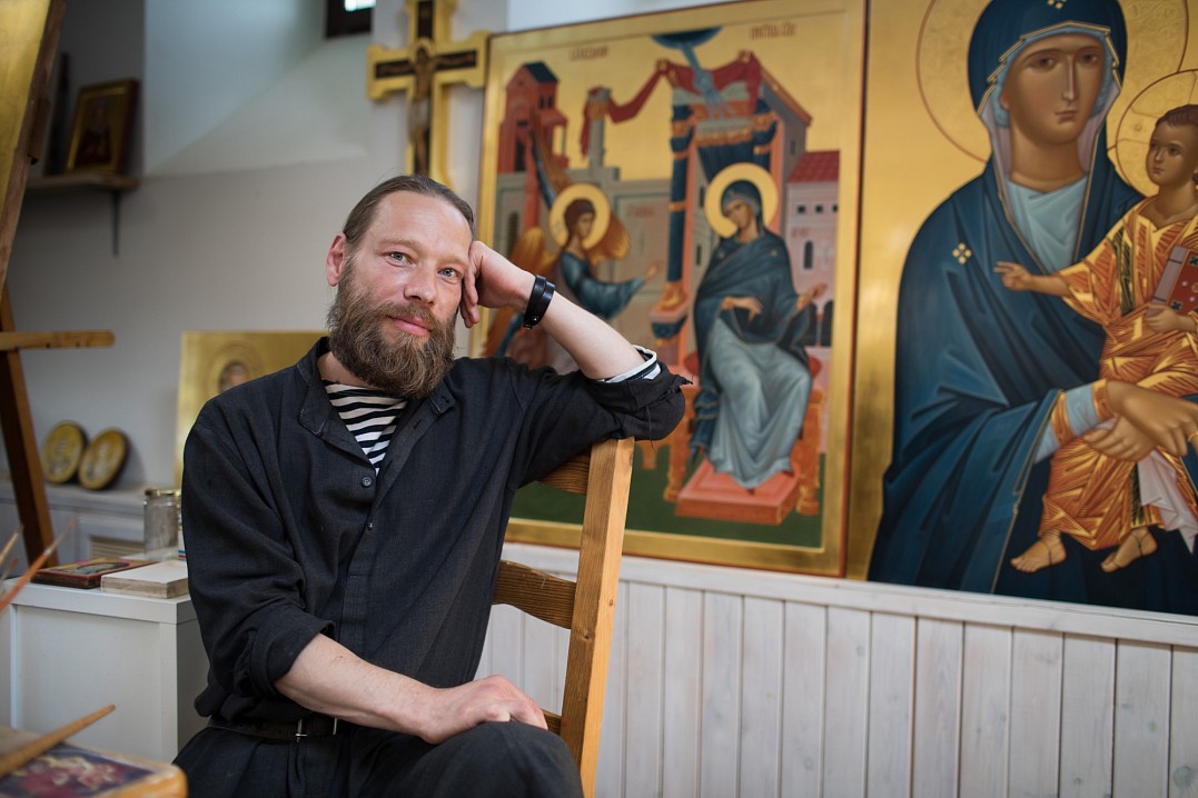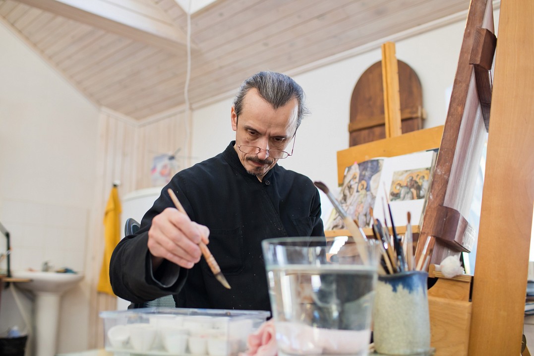 "Для иконописца важно «войти» в образ, почувствовать его. Когда молишься, святые подсказывают нам мысли. Бывает, что какая-то деталь не удается, думаешь, как же её прописать, молишься – и приходит решение", – рассказывает иконописец отец Алипий.