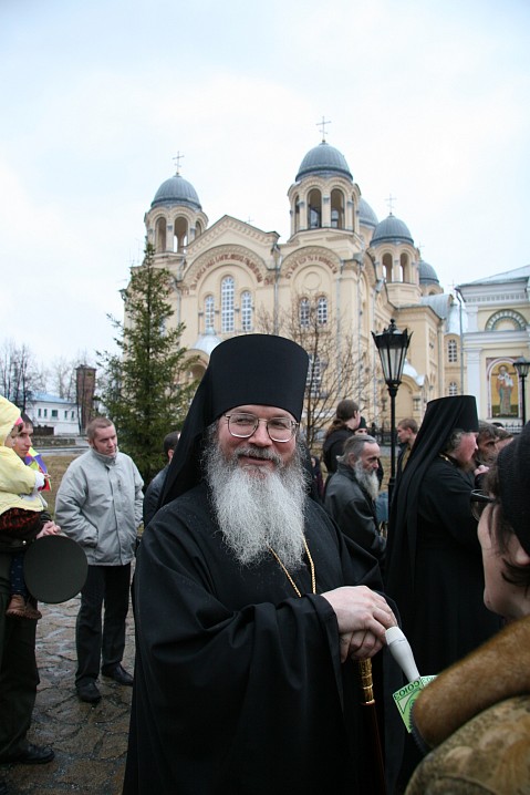 – Мне бы хотелось немножко еще закончить предыдущую тему. Духовная жизнь, молитва, внутреннее содержание монаха или всего монастыря – это определяющее. Иногда оно достигает таких высот, что место само становится освященным. Ведь не место освящает человека, а человек освящает место. Великие подвиги наших предшественников стяжали великую благодать Божию и освятили те места, сделали их духовно привлекательными для верующих людей. Главная цель монашествующих и вообще православных христиан – идти к Богу, идти к духовному совершенству. Господь нам заповедал: "Будьте совершенны, как и Отец ваш Небесный совершен есть", будьте святы, идите к святости. Это не значит, что мы сейчас все стали святыми, конечно, нет. Мы должны быть трезвыми и оценивать свое положение правильно, но эта высокая цель нам задана Христом, и мы должны к ней идти. И если это движение есть, то как бы ни скрывалось, это чувствуется, и люди идут к благодати, чувствуют ее. Поэтому всегда, мы знаем, старцы окружены людьми, которые стремятся совет получить, испросить молитв, потому что знают, что эти молитвы Господь услышит. К этому нужно нам стремиться всем. Идти, конечно, нелегко по этому пути. Надо бороться со своими страстями, много очень преодолевать в себе, смиряться, отсекать свою волю, подчинять себя строгим правилам православного подвижничества. Это все очень нелегко. Но делать это нужно. Тогда это будет правильным и осмысленным и принесет плоды.