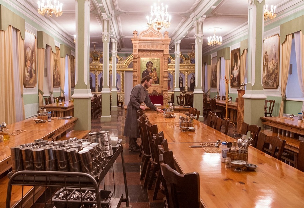 Что же касается молитвы, то мы основываемся на правиле, которое было на Старом Валааме и вошло в русскую монашескую традицию. Три канона с акафистом у нас совершаются после вечерни, на повечерии, плюс келейно братия читают Иисусову молитву. Минимальное количество времени, которое насельник обители должен посвятить Иисусовой молитве, – полчаса. Больше – пожалуйста. Есть насельники, которые по благословению своего духовника, встают до службы или, наоборот, творят молитву с вечера. Все это индивидуально. Здесь не может быть общих правил, потому что у всех разные послушания. Возьмите монастырскую ферму, например, где корова определяет, во сколько ты должен вставать и идти на дойку. Или, скажем, послушания в экономской службе: будет ли кому-то хорошо, если водитель не выспится? У нас был такой случай: один брат увлекся молитвой, стал молиться по ночам, мало спал, в результате заснул за рулем и врезался в сосну. Жив остался, слава Богу, но машина уже не подлежала восстановлению. Так что, знаете, здесь надо избирательно подходить.