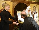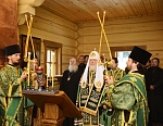 Здесь Святейший Патриарх Кирилл совершил чин малого освящения храма в честь преподобного Германа, а затем обратился к молящимся со словом: