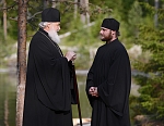 Затем Предстоятель Русской Православной Церкви совершил прогулку по острову, посетив часовню пророка Елисея, келейный корпус и хозяйственные постройки.