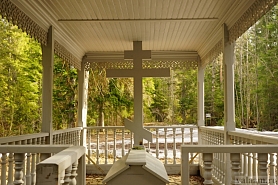 Потом открылся Никольский скит. Он располагается на небольшом островке – Крестовом, рядом с Монастырской бухтой и соединяется с главным островом мостиком (как и несколько других островов). Там есть два храма – в честь святителя Николая и домовый в честь преподобного Иоанна Дамаскина. Основное послушание братии – чтение Псалтири. Первое время Псалтирь читали на Всехсвятском скиту, потом – на Никольском.