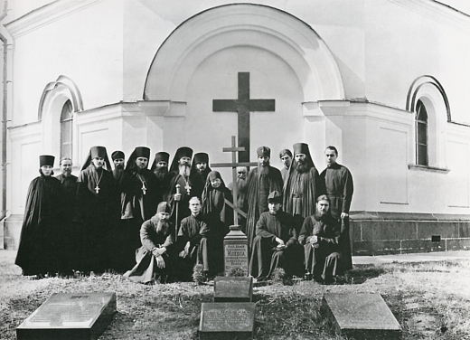 На кладбище в скиту Всех Святых, у восточной стены алтаря, похоронен иеросхимонах Клеопа (Антонов). Фото примерно 1994 года.