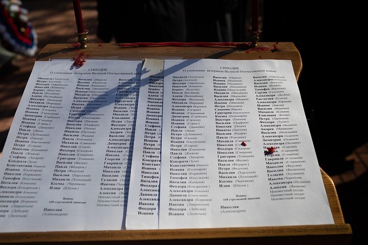 Мы ведем синодики. Богомольцы приходят, оставляют записки, в которых пишут имена своих прадедушек, дедушек, воевавших и погибших в Великую Отечественную войну, репрессированных, погибших в Афганскую и Чеченские войны, в Дагестане, много присылают поминовений из Донбасса и Сирии.