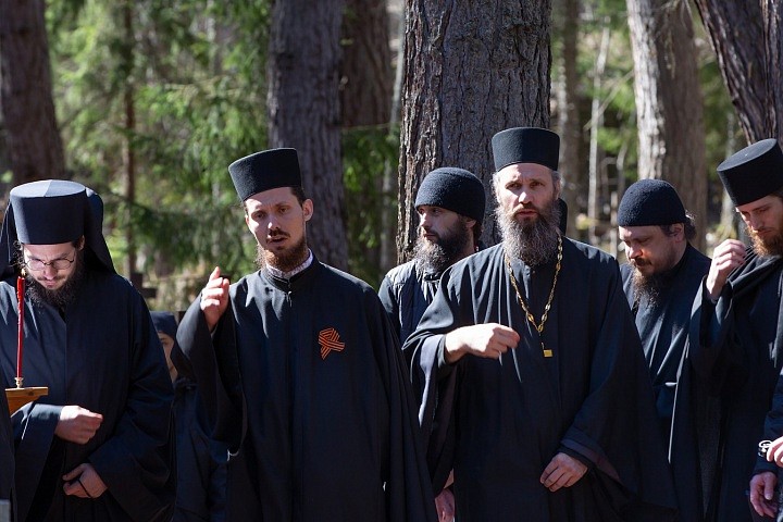 По законодательству Российской Империи, монахи на военную службу не призывались. Но было призвано около 200 послушников, практически вся молодежь и еще около 100 монахов пошли на войну в альтернативное служение – на поле брани они работали как медбратья, вытаскивали раненых. Многие из них не вернулись. Вот их имена».