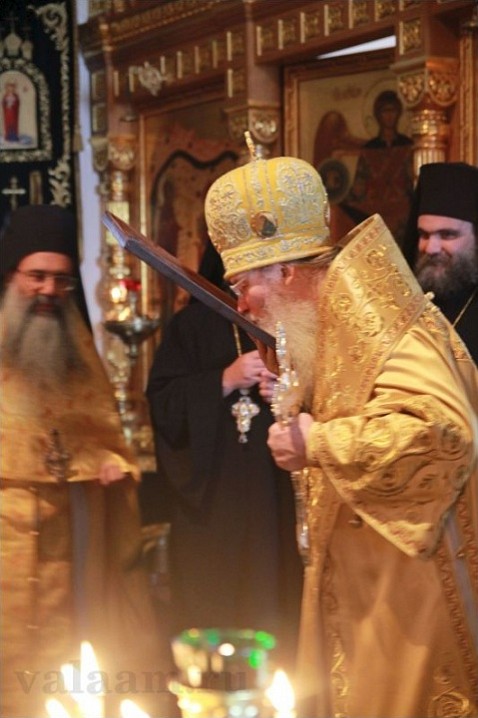 В свою очередь, кипрский Владыка передал Валаамской братии на вечное хранение икону и ковчежец с частицами мощей священномучеников Кипрских. По окончании Божественной литургии митрополит Исайя с волнением сказал: «Я думаю, что ничего в Церкви Божией не происходит случайно, и поэтому не случайно мы сегодня собрались вместе в этот особый день. Мы собрались, чтобы вместе объединить наши молитвы и засвидетельствовать о церковном единстве. В теперешнее время, когда Церковь Христова подвергается особым испытаниям, не только на Украине, но и в других регионах земли, мы должны через нашу совместную любовь и соборную молитву свидетельствовать о единстве. Нашим присутствием здесь на острове Валаам мы хотим засвидетельствовать нашу любовь и поддержку великого православного русского народа».