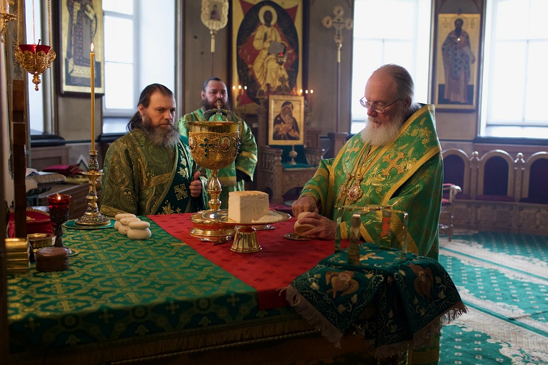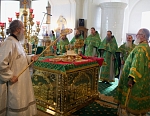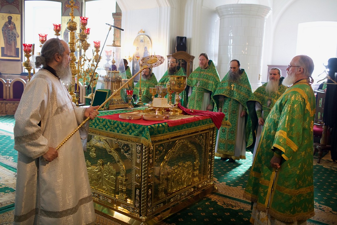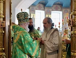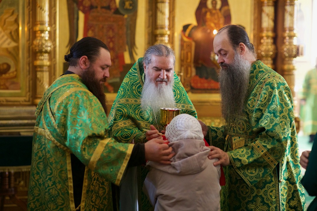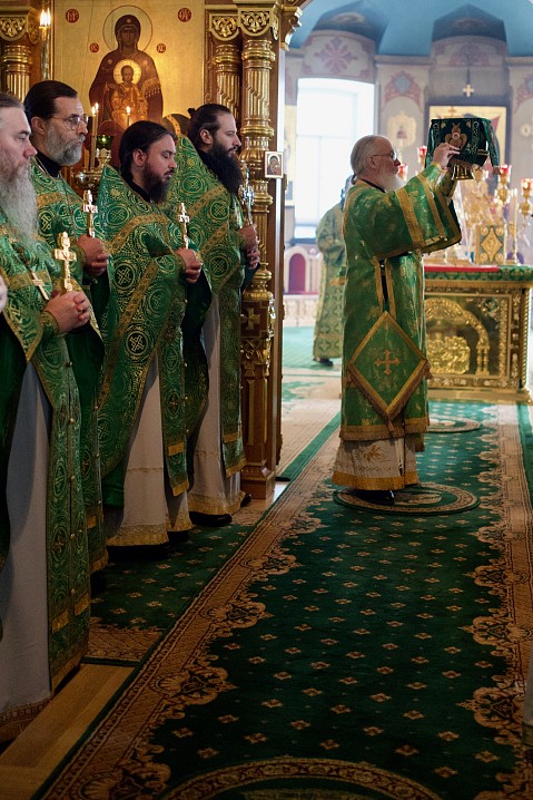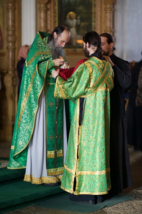 Праздничные Всенощное бдение и Божественную литургию возглавил Игумен монастыря епископ Панкратий. По благословению Святейшего Патриарха Московского и всея Руси Кирилла за Литургией Владыка совершил хиротонию монаха Климента во иеродиакона.
