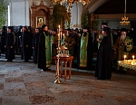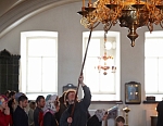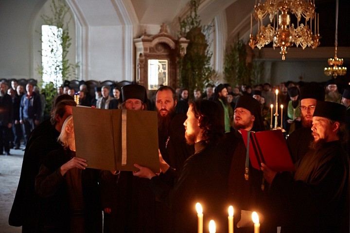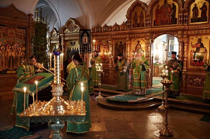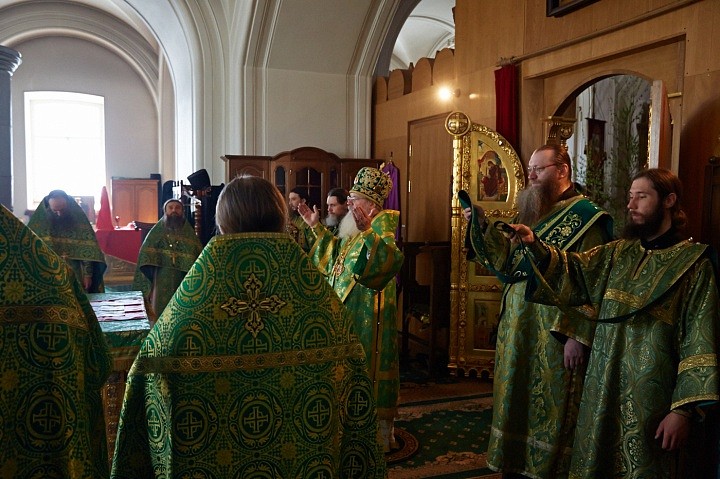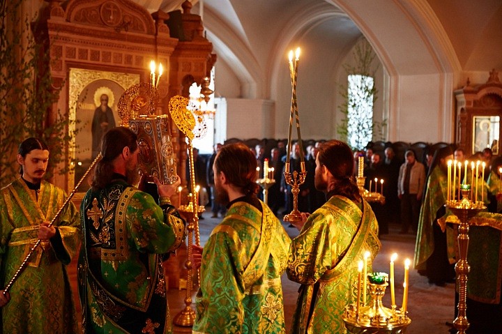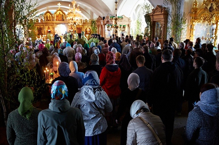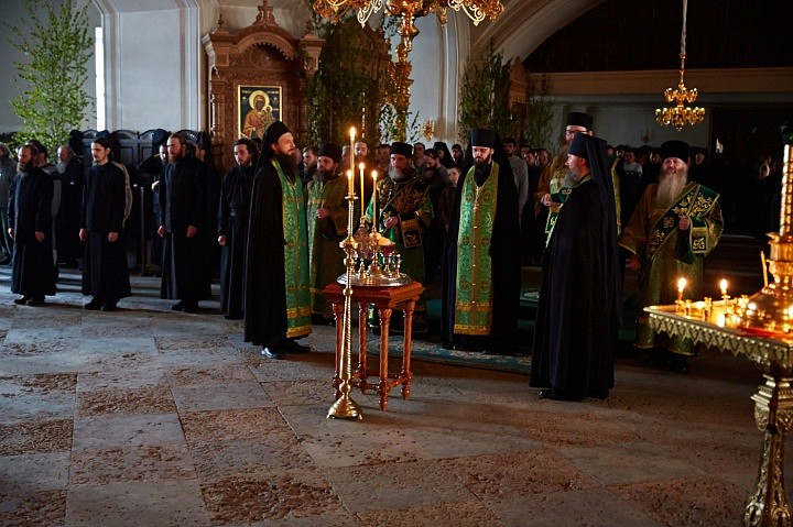 В этот день две тысячи лет тому назад, апостолы осознали суть и глубину Божественного откровения, и, начав при помощи Святого Духа разговаривать на разных языках, смогли покорить весь мир – не оружием, не силой, а словом Евангельской проповеди, выполняя Христовы заповеди: «Православные, монахи, богомольцы - мы пришли сюда, чтобы исполнить заповедь Христову, и не просто исполнить, а исполнить ее в полноте, выполнить ее в совершенстве, как призывает нас Господь Иисус Христос, - продолжает епископ Троицкий Панкратий, - и в этом весь смысл христианства. И когда мы начинаем явно грешить, идти против совести, идти против ближнего, мы уклоняемся от этой цели. Сначала одно искушение — начинаем какие-то каноны искать, какие-то правила, и всё не так, всё неправильно, и все нам мешает. Потом приходит другое искушение — начинаем расслабляться, утешаться, начинаем получать удовольствия: фильмы смотреть, винопитием заниматься, — опять сходим с прямого пути, с того пути, на который каждого из нас поставил Христос. Он призвал к единству, о котором мы сегодня поем, которое сегодня возвеличиваем. Поэтому братие, будем жить единым сердцем и едиными усты, прославляя Бога, и стараться исполнять Его святые заповеди. Да поможет Господь каждому из нас».