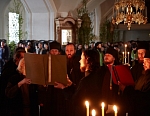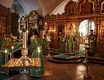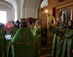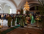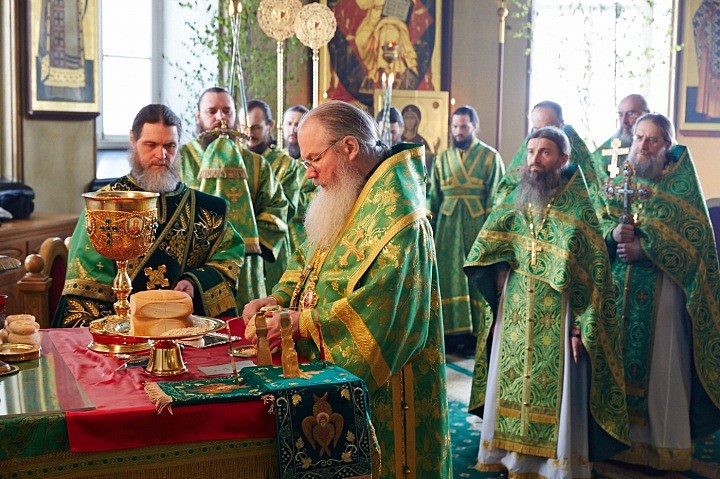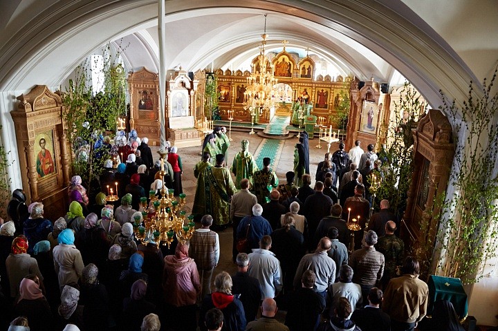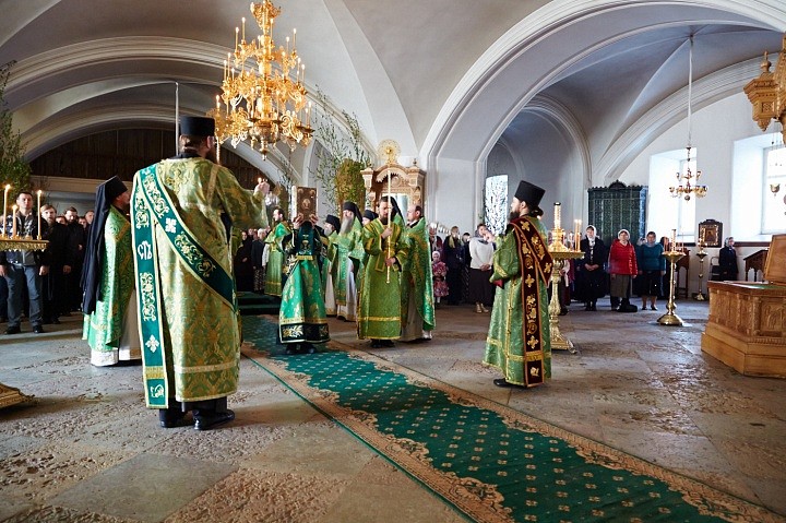 «Едина сила, едино существо, едино Божество», - звучало в обители песнопение о Святой Троице, и сегодня за Божественной литургией причастились все молящиеся в храмах Валаамского монастыря. Праздничное богослужение возглавил игумен обители епископ Троицкий Панкратий, вместе с ним в Спасо-Преображенском соборе вознесли свою молитву братия монастыря и многочисленные благочестивые миряне, решившие встретить этот светлый день на Валааме.