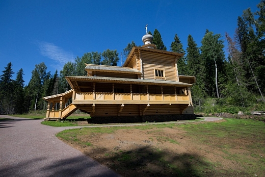 Богоявленский храм из села Семеновское Пушкинского района Московской области (XVII — XVIII вв.) В 1970-м году перевезен в музей деревянного зодчества на реке Истра, у Ново-Иерусалимского монастыря. Сгорел в сентябре 2000 года. Решили воссоздать в Валаамском Новом Иерусалиме, рядом с Воскресенским скитом .