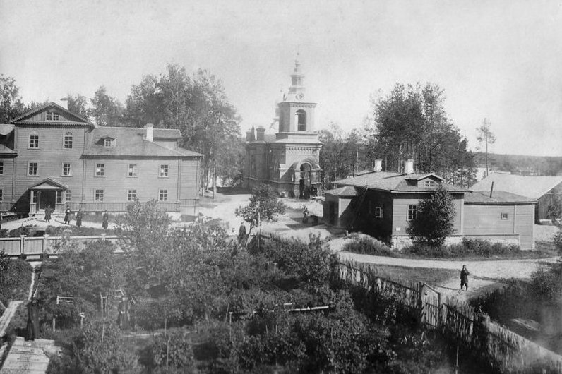 И в первое десятилетие XX века здесь уже находились многочисленные постройки: двухэтажный деревянный братский корпус с кельями для монахов, складские помещения и сараи для скота. Монахи занимались земледелием, рыбной ловлей и ухаживали за своим плодовым садом. На берегу имелась хорошая пристань, куда подходили суда с Валаама. Всего в 300 метрах от церкви, в береговых скалах острова силами монахов, послушников и наемных рабочих до 1910-х годов добывался «валаамский» гранит, который баржами вывозился на Валаам, в Санкт-Петербург и Москву.