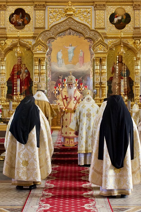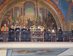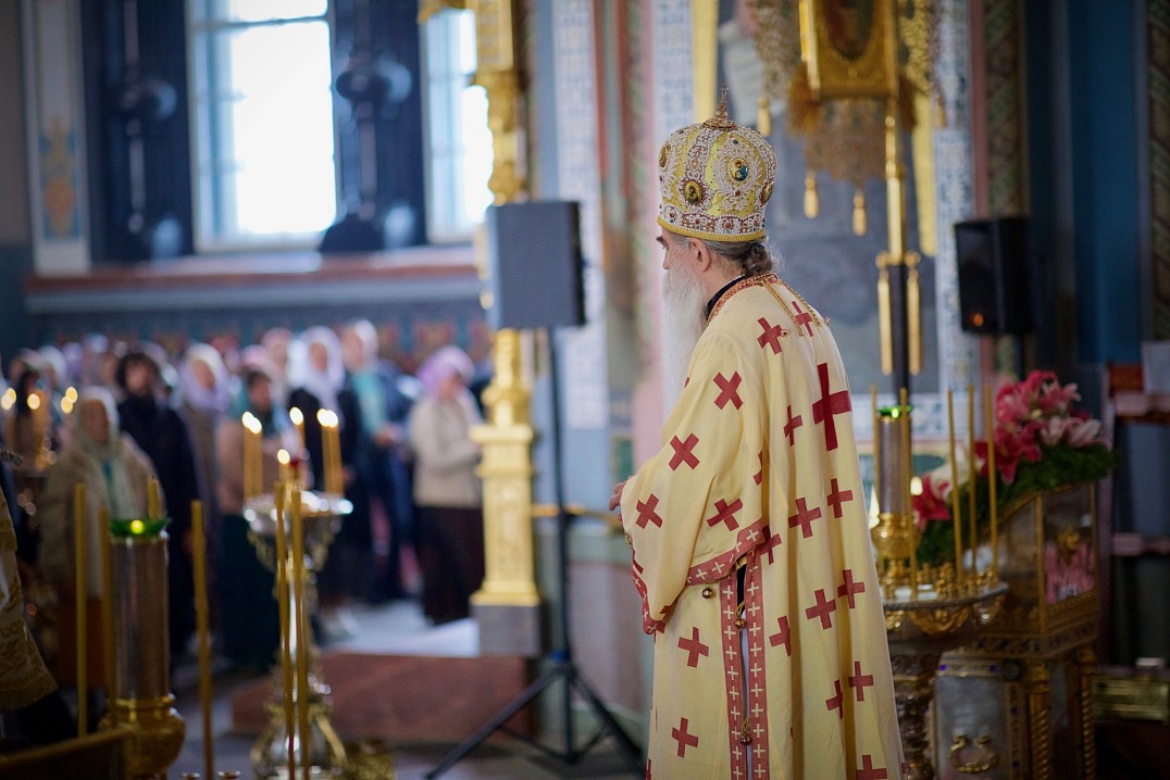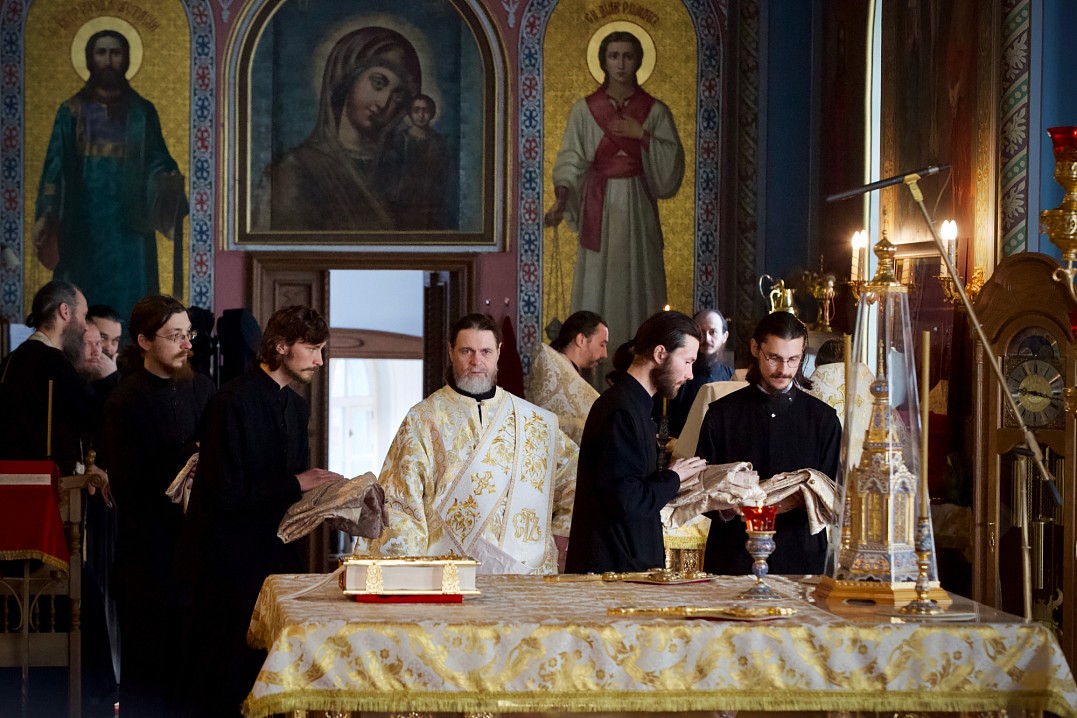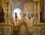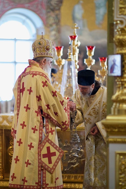 Они были великими подвижниками, они создали и духовно укрепили эту великую обитель на севере Святой Руси. Валаам – это не только видимые знаки духовного величия, но, главным образом, это та великая благодать, которую стяжали Валаамские святые, и которая по их молитвенному предстательству почивает на святынях Валаама, ощущается на этом благодатном, необыкновенном, чудном острове. Их память сегодня мы светло празднуем, всех их почитаем, все призываем их святые молитвы. Особенной радостью сегодня явилось то, что Божественную литургию возглавил один из старейших иерархов Сербской Православной Церкви – Преосвященнейший епископ Ириней.